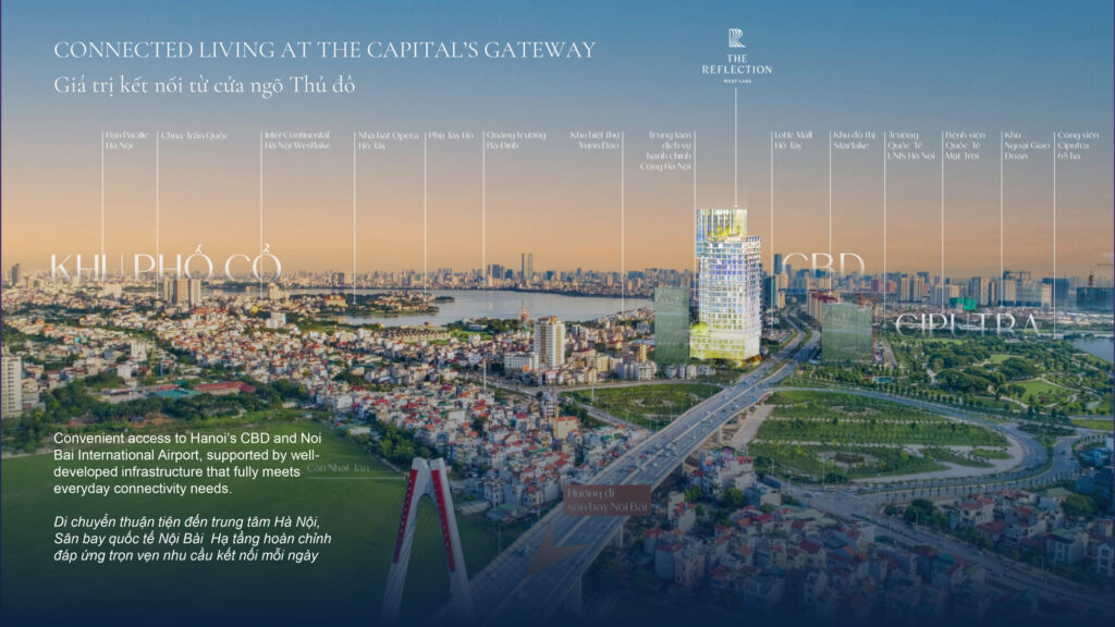 Từ The Reflection West Lake, cư dân dễ dàng di chuyển đến các khu vực trọng điểm: